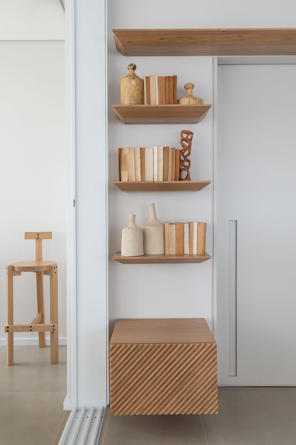 Por ter uma presença marcante em todos os cômodos, a madeira acabou dando nome para o projeto: Apartamento Freijó, assinado pelo escritório de arquitetura Très Arquitetura.