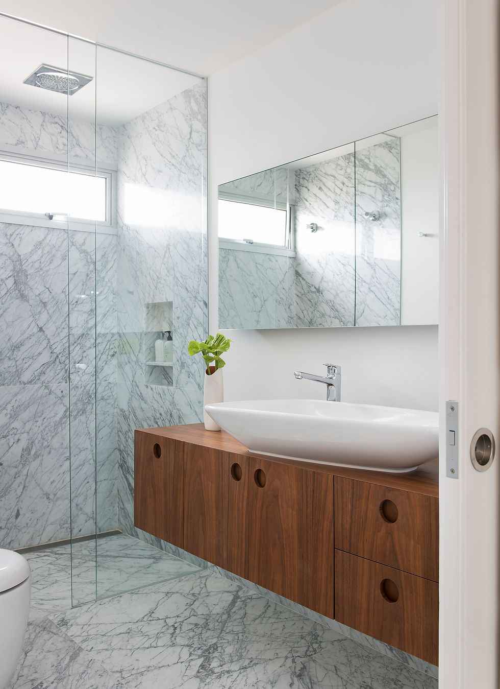 Para o hometheater, elaboramos um suporte com requadro em madeira laca cinza e portas com tela trançada onde aparelhos e fios ficam escondidos. Para o quarto, todo o mobiliário foi feito em laca branca, conferindo leveza e modernidade para este ambiente que é essencialmente de descanso.